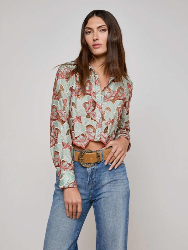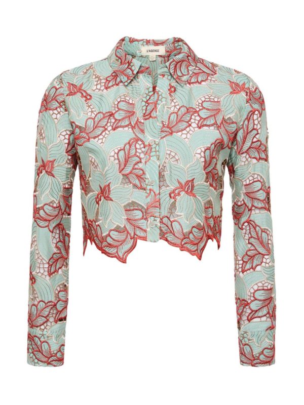 L’AGENCE Akemi Cropped Lace Top In Multi Colored Eyelet | Women Blouses & Tops
