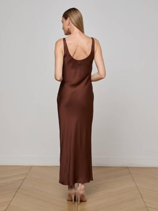 Minimal, elegant, and flattering, the Akiya dress is an evening essential. Lustrous, bias-cut satin drapes beautifully over the figure. Now back in a versatile hot fudge brown.