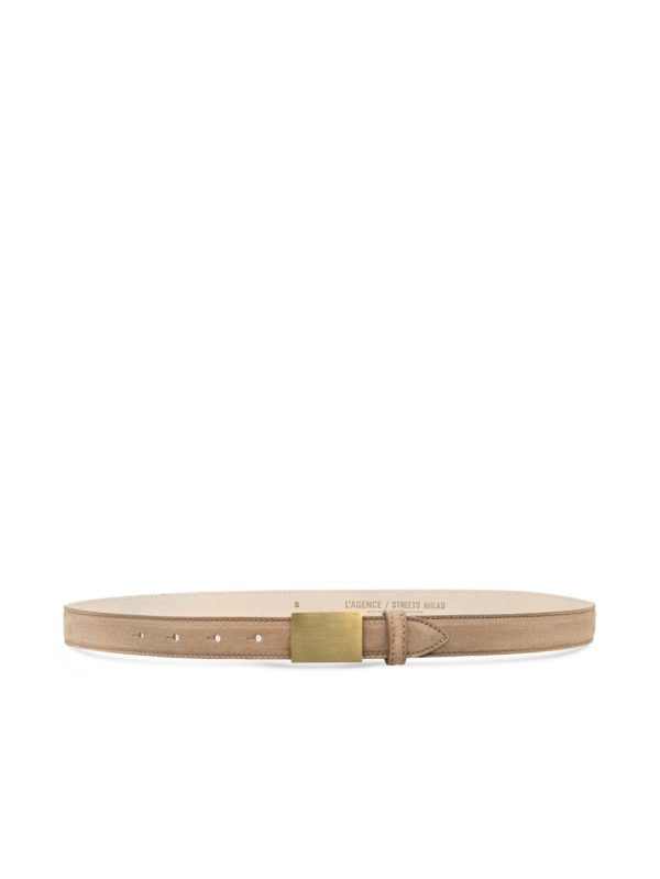 Elevate your wardrobe with this sophisticated suede skinny belt featuring an elegant gold-plated buckle.