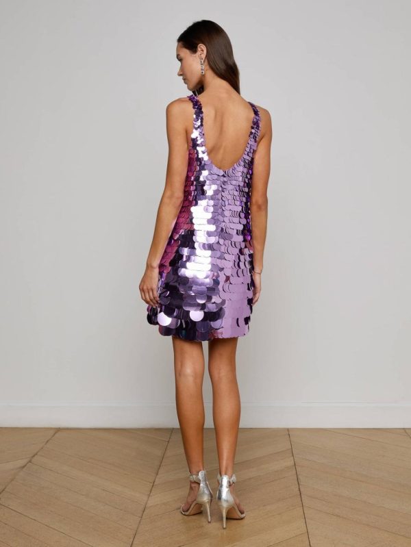 Meet Andie, the ultimate party dress and epitome of playful glamour. Constructed with a gradient of overlapping paillettes that increase in diameter toward the hem, it shimmers with every movement. The relaxed, sleeveless silhouette and scoop neckline add an undeniable cool factor.