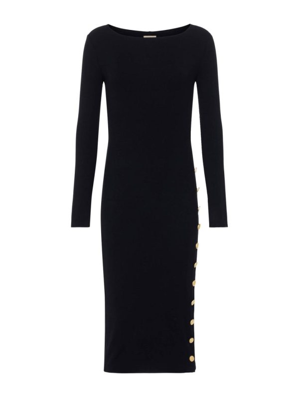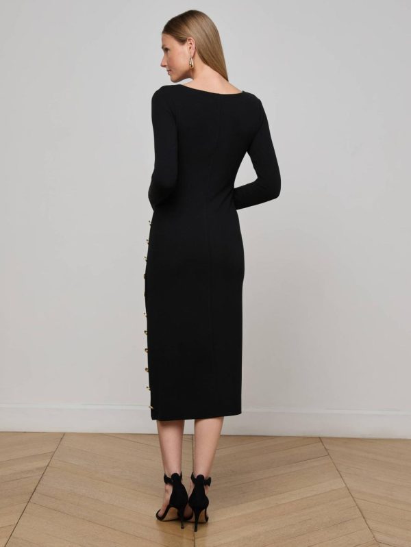 Experience exceptional comfort with our ultra-soft stretch modal fabric that contours to your curves for a perfect fit. The Astra midi dress showcases a sophisticated boat neckline and figure-flattering silhouette that elevates your style. A dramatic high side slit adds contemporary elegance, while polished gold-tone hardware delivers refined sophistication. This versatile essential effortlessly transitions from daytime chic to evening glamour.