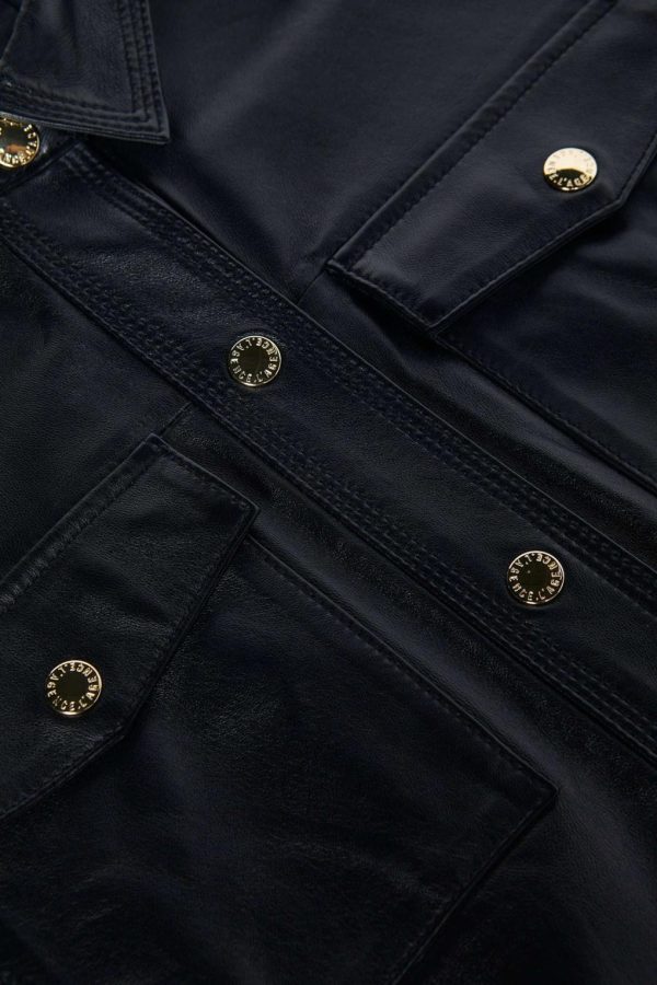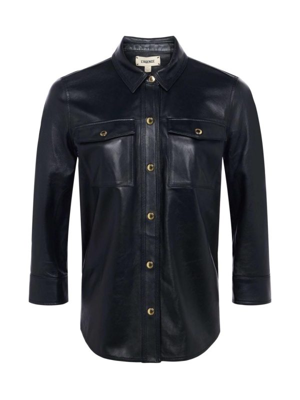 Discover your new wardrobe essential crafted from incredibly supple, lightweight leather that moves with you. Featuring elegant three-quarter sleeves and sophisticated gold snap buttons for a polished feminine touch. This versatile piece works perfectly as a standalone top or as a chic layering piece that transitions effortlessly through seasons.