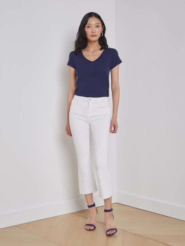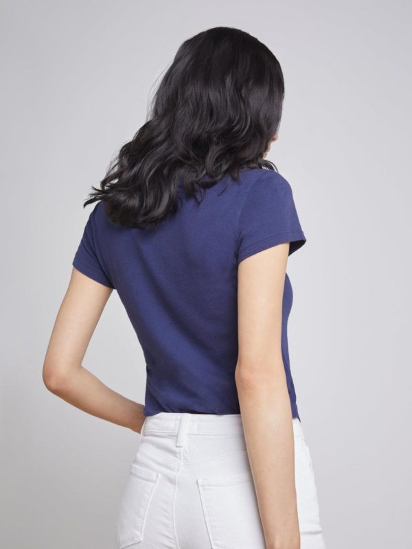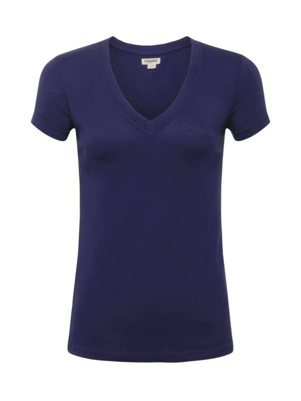 L’AGENCE Becca Navy V-Neck Cotton Tee | Women’s Essential Top
