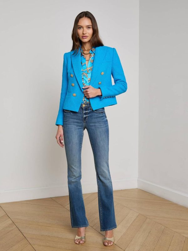 L’AGENCE Brooke Tweed Blazer In Dresden Blue/Gold Chain | Women Blazers & Jackets