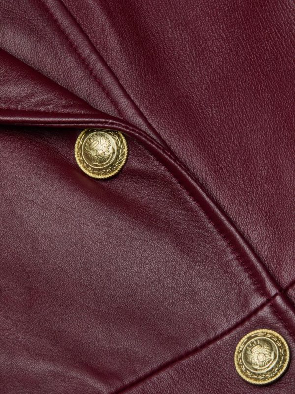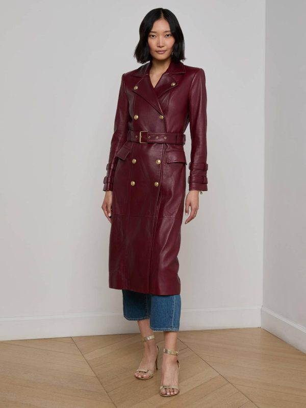 This style debuted at the Fall ‘25 NYFW presentation. The Celina is crafted from a supple, fine-grain leather dyed a beautiful shade of black cherry. This leather trench coat is a timeless, showstopping closet hero to treasure year after year.