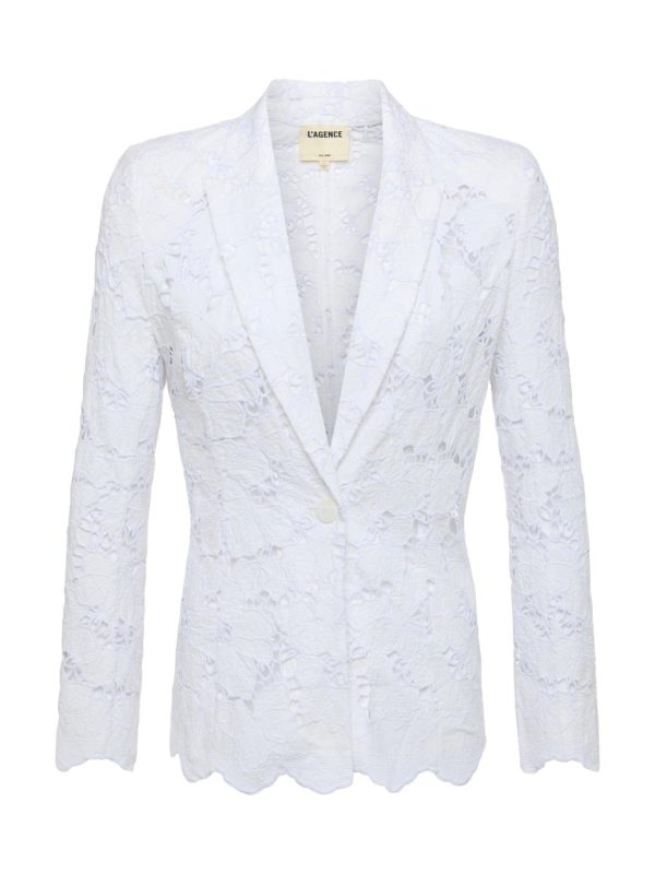 The ultimate single-breasted blazer, now in a gorgeous white lace.