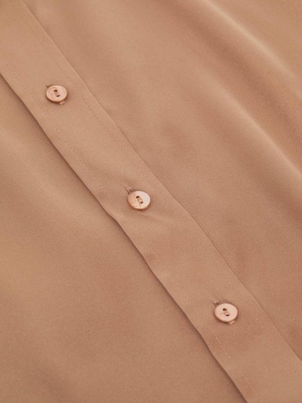 Meet the iconic silk button-down that belongs in every wardrobe. Our signature three-quarter sleeve shirt is back in light brown.