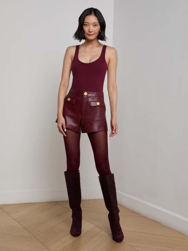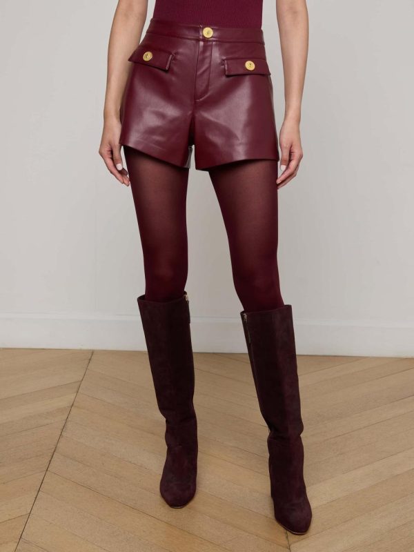 Polished details meet a supple vegan leather. Our Dionne short is a versatile bestseller, perfect for both work and play. Now in black cherry.
