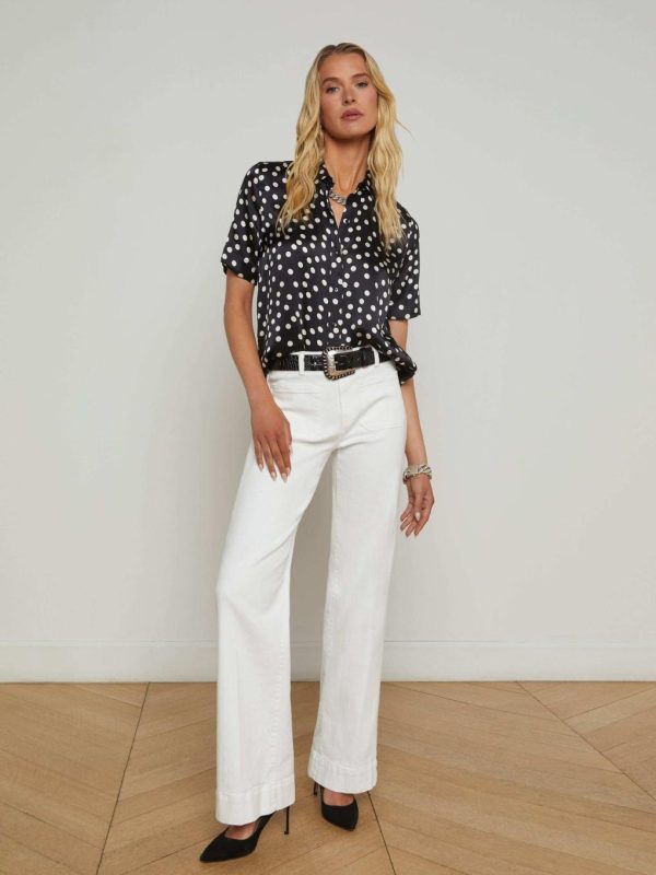 Meet our bestselling short sleeve silk blouse. The Ellah is back this season in a playful polka dot.
