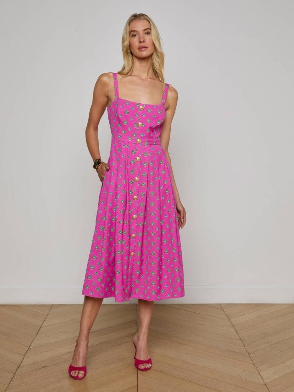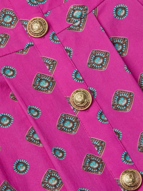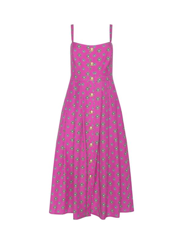 Our polished pinafore dress is back in a bold fuschia and turquoise Southwestern print. The Esmeralda is a warm weather essential, crafted from our crisp poplin for an easy, tailored fit.