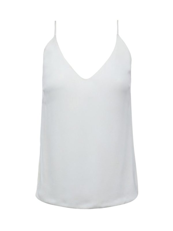 A slinky, 100% silk camisole in soft ivory. Sharp v-neckline, adjustable spaghetti straps, and darted cups streamline the silhouette, and make for the perfect layering piece.