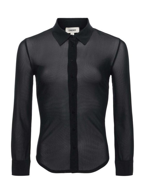 This style was featured in our Fall ‘25 NYFW presentation. Sultry and sheer, the Indiana is a button-down top that offers endless versatility. Layer it over our Nica bodysuit for day or pair it with black undergarments for night. Now in sheer black.
