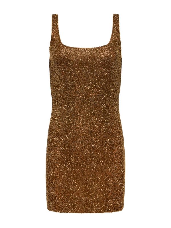Meticulously crafted with allover beading, this shimmering mini dress features a flattering square neckline and a body-skimming fit. It’s a luxe statement-maker that’s perfect for your next event.