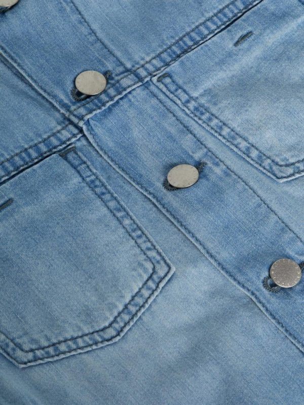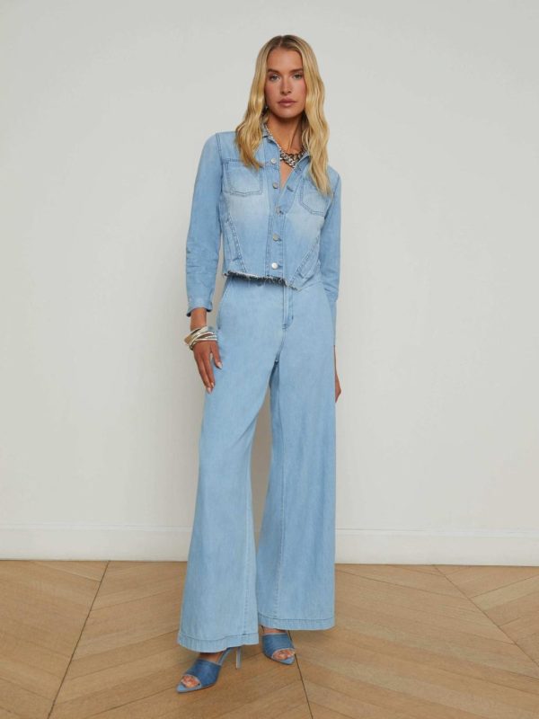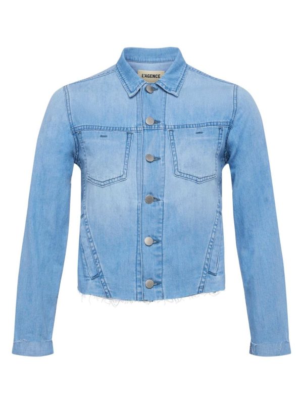 Discover the perfect blend of style and sophistication with this beautifully tailored denim jacket, now available in a fresh light wash finish. Our signature bestseller features strategically angled seams that create stunning waist definition for a flattering silhouette.