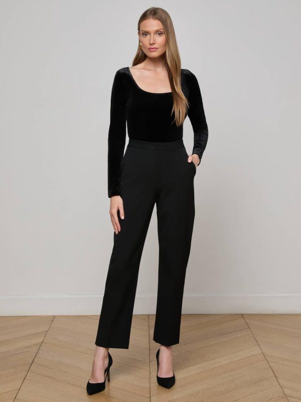A ballet-inspired wide U-neck adds understated elegance to the Jelena top.