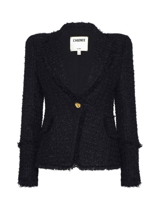 L’AGENCE Kaisley Frayed Trim Blazer – Black Women’s Tailored Jacket