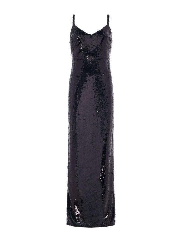 Make an entrance with the Karma. A sexy, structured bodice meets bold black sequins for a body-skimming statement.