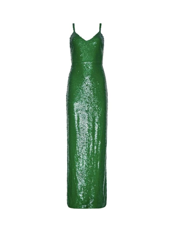 When you wear the Karma dress, good things are bound to come your way. With emerald green allover sequins, it shimmers with a liquid-like sheen. A structured bodice flatters the figure, adding to its wow-factor and a high back slit allows for ease of movement. Perfect for making an impression.