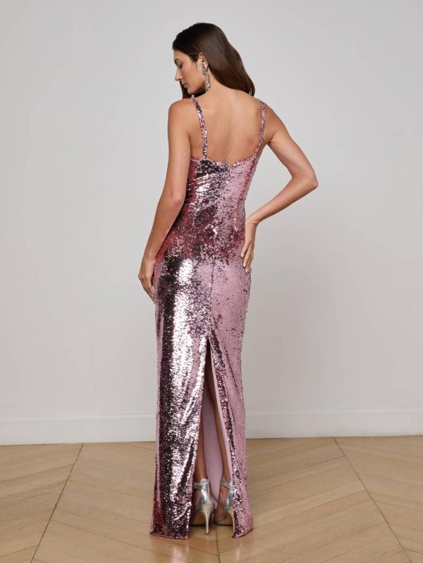 When you wear the Karma dress, good things are bound to come your way. With allover mauve sequins, it shimmers with a liquid-like sheen. A structured bodice flatters the figure, adding to its wow-factor, and a high back slit allows for ease of movement. Perfect for making an impression.