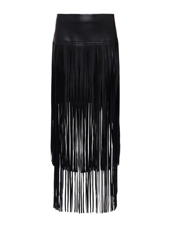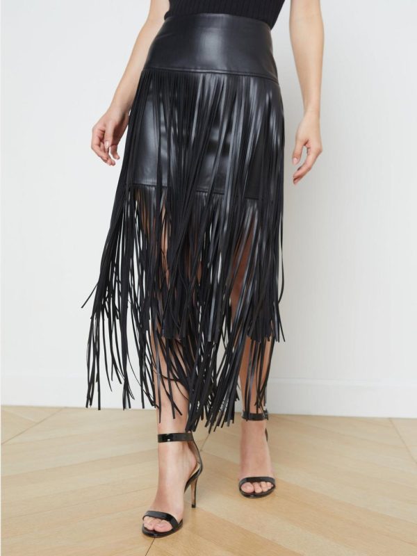 Our newest vegan-leather skirt, updated with extra-long fringe. The Karolina slim-fit miniskirt beguiles with two tiers of fringe that fall to lower calf and offer the ultimate in sexy movement. The deep yoke waist and hidden back zip keep the look flatteringly smooth. Wear with a slim cami and your highest heel for cool club-night style. Try a jacket and short boot for a modern day look.
