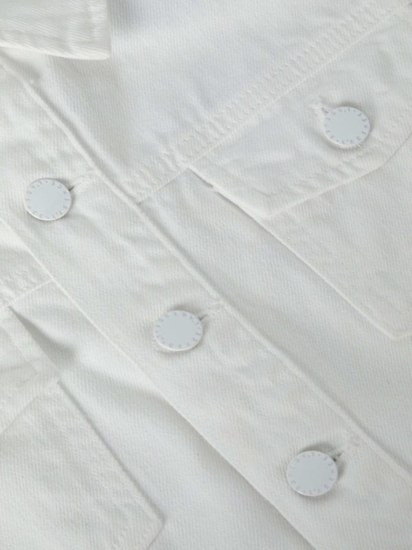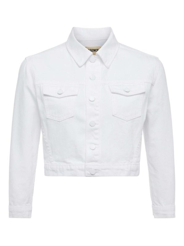 Elevate your style with this fresh take on the classic jean jacket, featuring a modern cropped silhouette in crisp white.