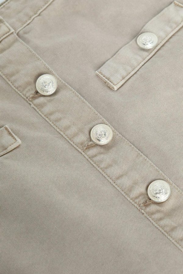 Everyone’s favorite denim mini skirt is back in a versatile neutral. The Kris combines prep-inspired polish with casual ease.