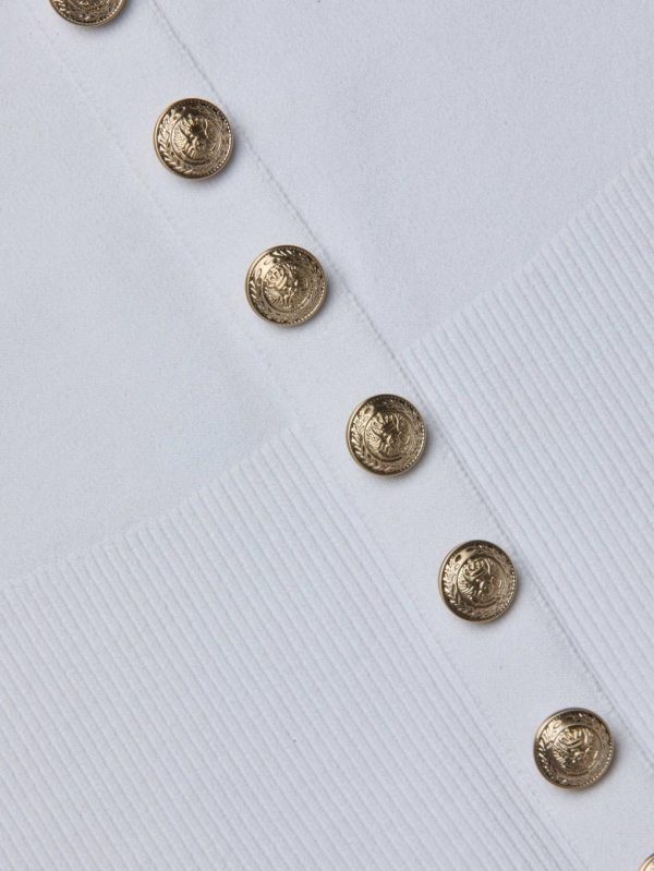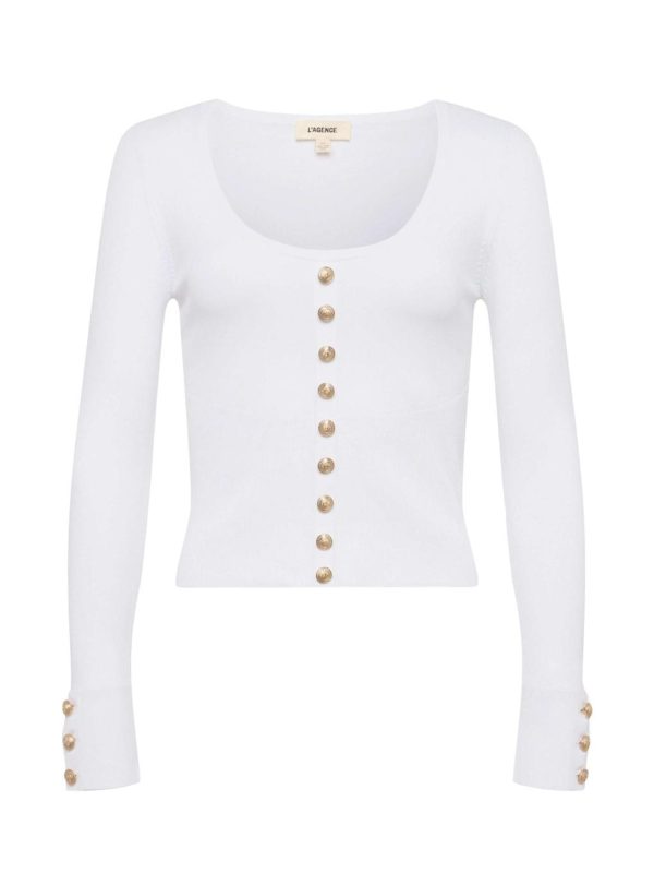 Discover your new favorite long sleeve top. Elegant miniature gold buttons and a sophisticated deep scoop neck elevate the Lanetta into a wardrobe essential. Now available in versatile white.