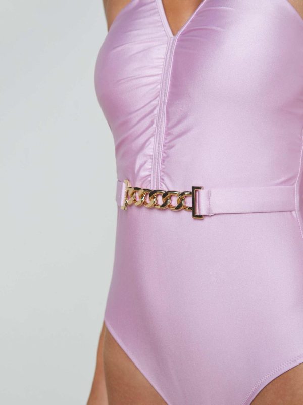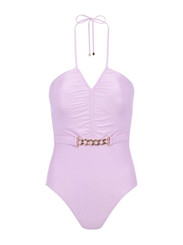 The Leila was designed to enhance confidence for any activity involving water—pool, beach, or boat. A ruched bodice and glamorous waist belt define the figure.