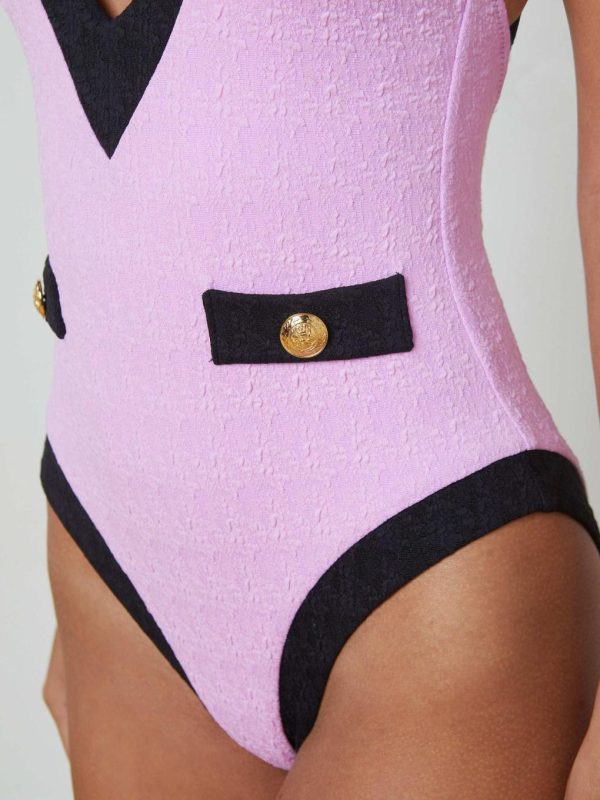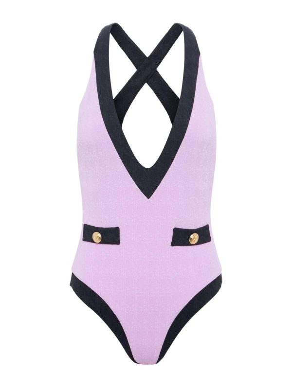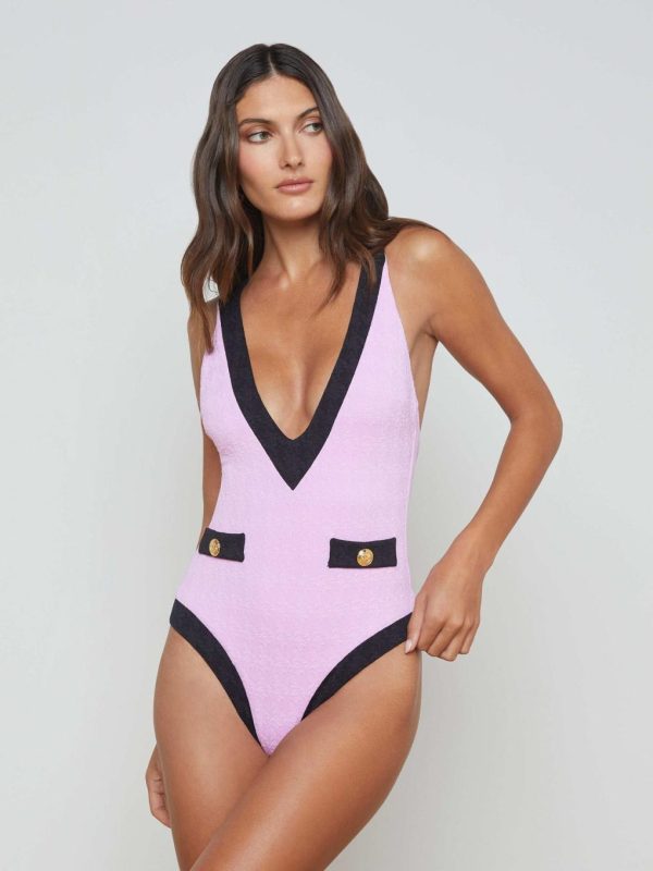 L’AGENCE Lisa Plunge One-Piece Swimsuit In Light Violet/Black | Women Swimwear