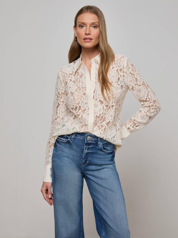Sheer floral lace makes a romantic statement, worn alone for date night or layered over a camisole for the office. Now in vintage white.