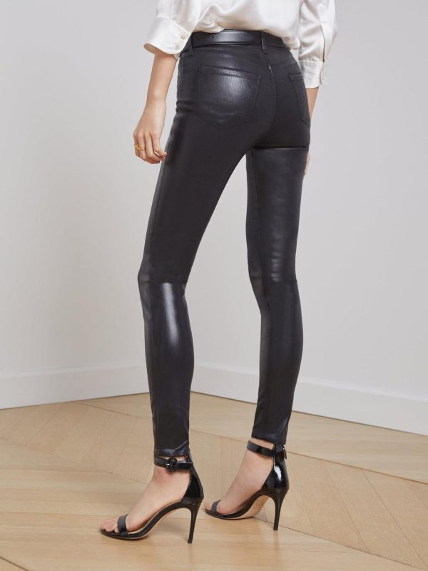 The beloved Marguerite jean with a subtle, yet stunning sheen in black. Tapered leg with longer 30″ inseam hugs from hip to ankle, while the contoured waistband defines and slims the natural waist. A lightweight, light-catching coating is added to our premium stretch denim for an element of statement-making sophistication.