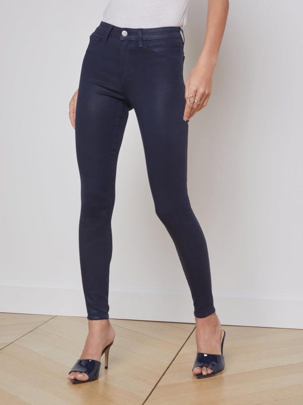 The beloved Marguerite jean with a subtle, yet stunning sheen in navy. Tapered leg with longer 30″ inseam hugs from hip to ankle, while the contoured waistband defines and slims the natural waist. A lightweight, light-catching coating is added to our premium stretch denim for an element of statement-making sophistication.