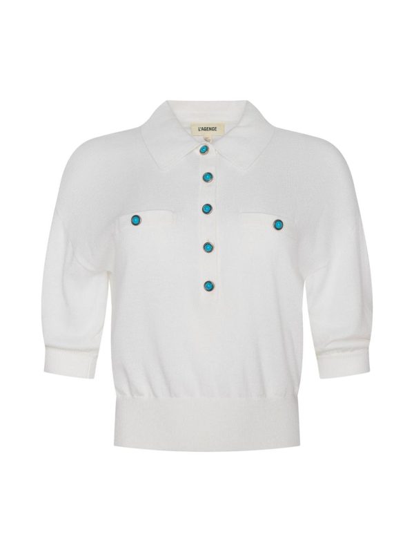 L’AGENCE Masaki Cropped Sweater In White/Turquoise | Women Knitwear
