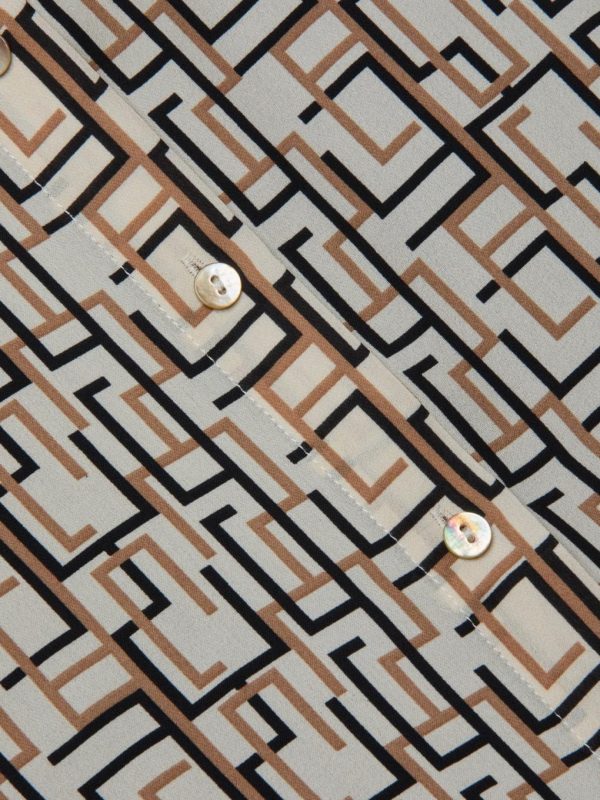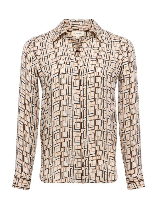 L’AGENCE Nina Silk Blouse – Ecru Multi Geometric Print Women’s Top
