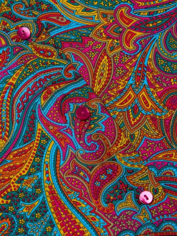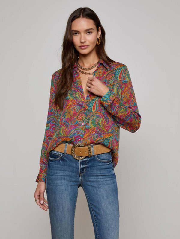 Our classic long-sleeve silk button down. This relaxed fit essential is now back in a vibrant paisley print.