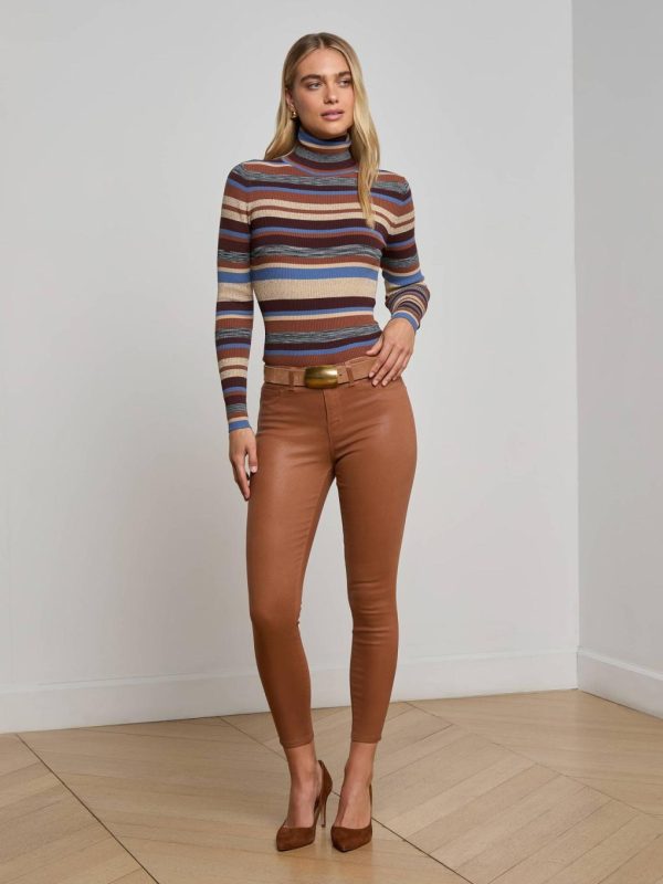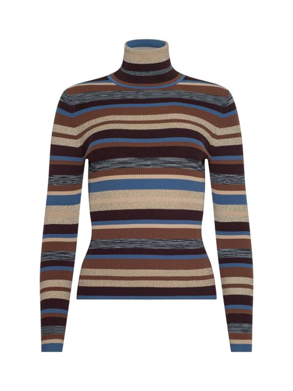 In fall-ready hues, this classic turtleneck with lurex stripes is a workday to weekend staple.