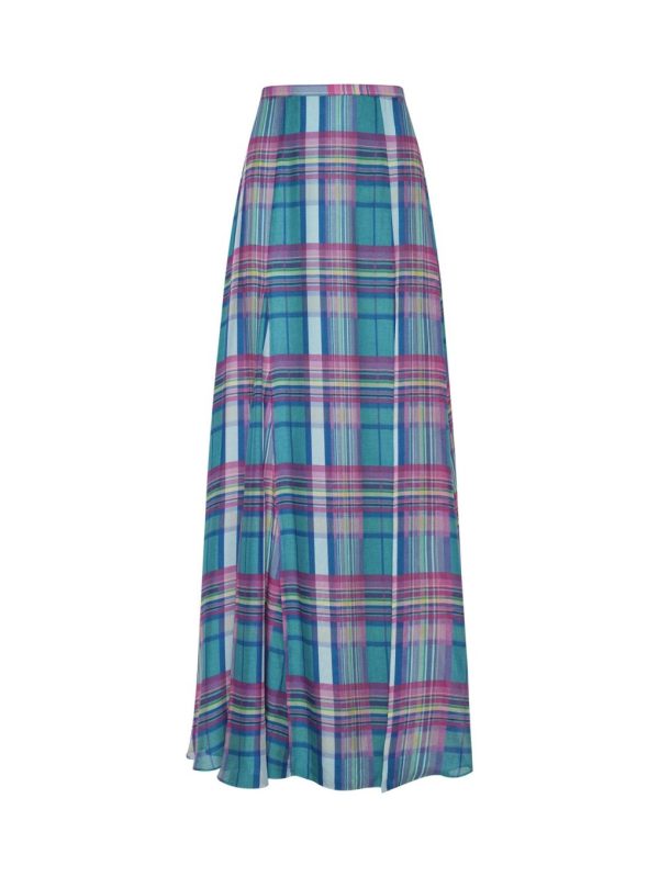 Summer fun in a maxi skirt, constructed from a plaid featherweight fabric. Dress it down with a white tee or pair it with the matching Cosette shirt.