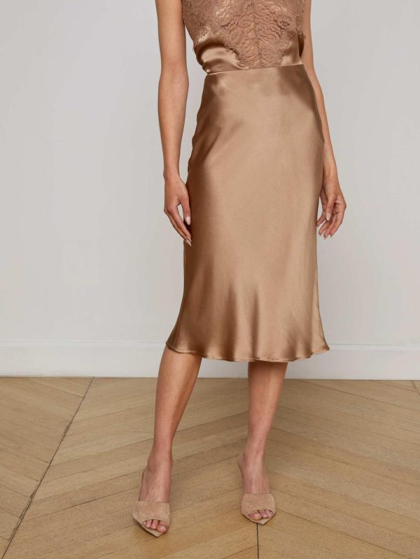 The perfect silk skirt does exist. The elegantly understated Perin skirt is bias cut from silk charmeuse, fits through the wait and hips and drapes to a subtle flared hem. Now in cappuccino, the Perin is infinitely versatile, pairing with equally well with tees and blouses.