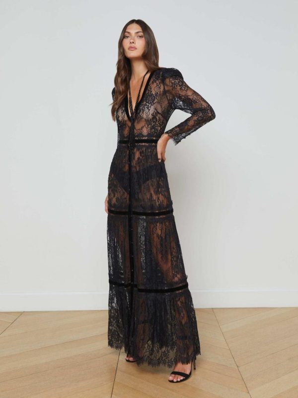 A head-turning spin on a classic vintage style, the Poe combines tiers of sheer lace with luxurious velvet trim. Wear it on its own or layer over a camisole and pant.