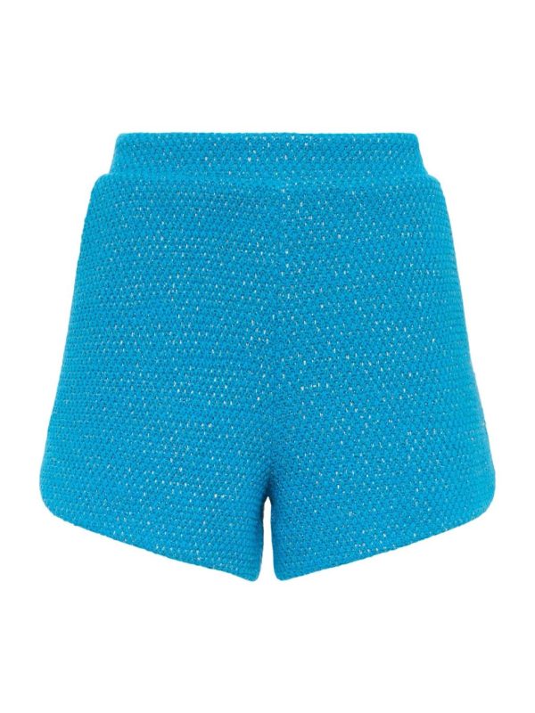 Meet the Radlee dolphin short, in a textured vibrant blue knit with subtle gold threading. It’s designed with a high rise, elasticized back waistband, and curved side hems for a sporty, flattering fit. Wear with its coordinating pieces for a fresh take on tailored dressing.