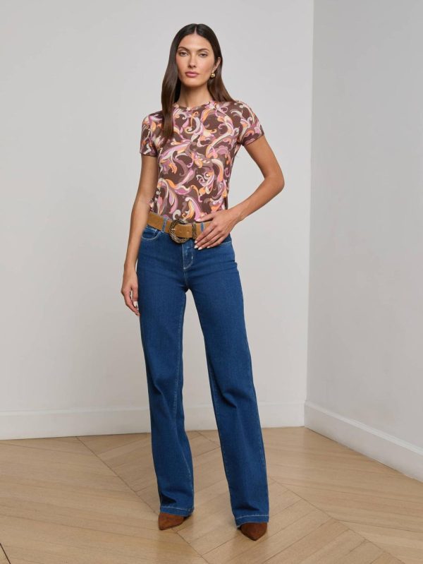 In a soft, supple fabrication and slim cut, Ressi is our most flattering short sleeve tee. Reimagined in new prints and colorways every season, she’s a L’AGENCE favorite year after year. Now in an abstract swirl print.