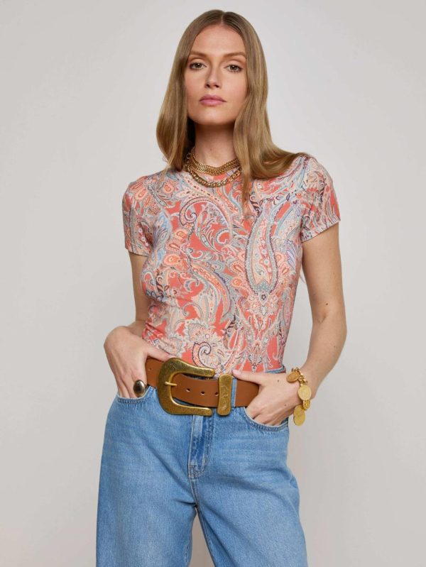 In a soft, supple fabrication and slim cut, Ressi is our most flattering short sleeve tee. This L’AGENCE favorite is back in a paisley print.