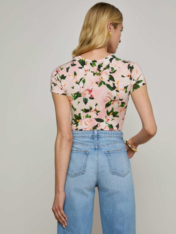 In a soft, supple fabrication and slim cut, Ressi is our most flattering short sleeve tee. This L’AGENCE favorite is back in a floral magnolia print.
