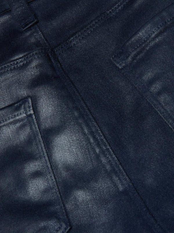 A sleek, slim bootcut, fitted through the hips and knee. A contoured waistband securely hugs the natural waist without gaping. Now in a dark midnight leather-alternative coated denim.
