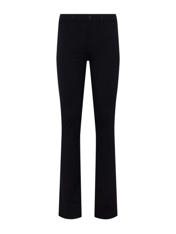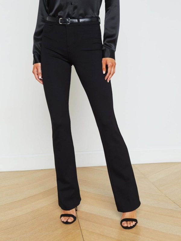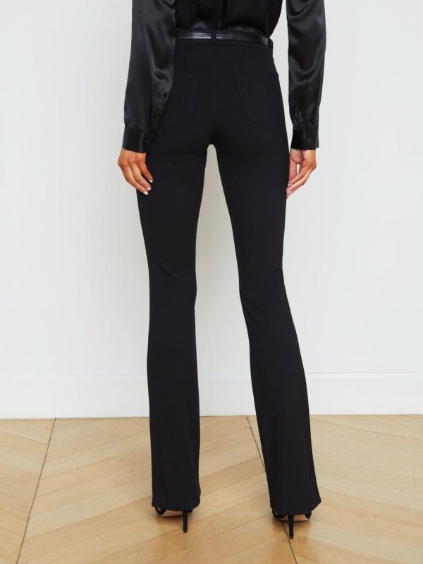 A classic high-rise bootcut pant in true-black ponte. Contoured waistband fits securely at natural waist, then hugs from hip to knee before releasing into a slim bootcut hem. High-recovery ponte holds its shape, smoothing the figure without sacrificing comfort. Classic five-pocket construction and zip fly closure.