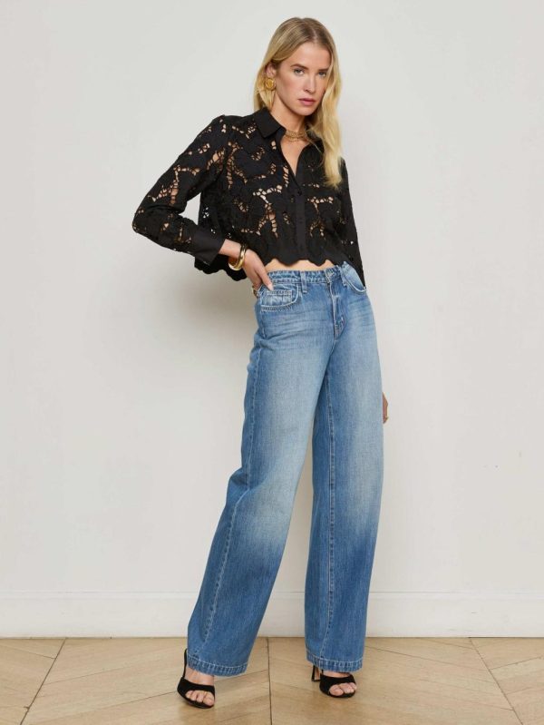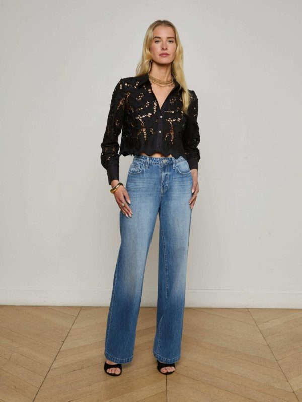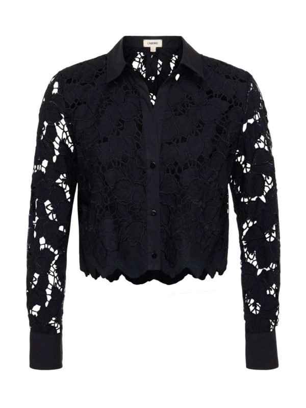 Our modern spin on an eyelet blouse, the Seychelle delivers classic shirting details in a cool cropped cut. Now in black.