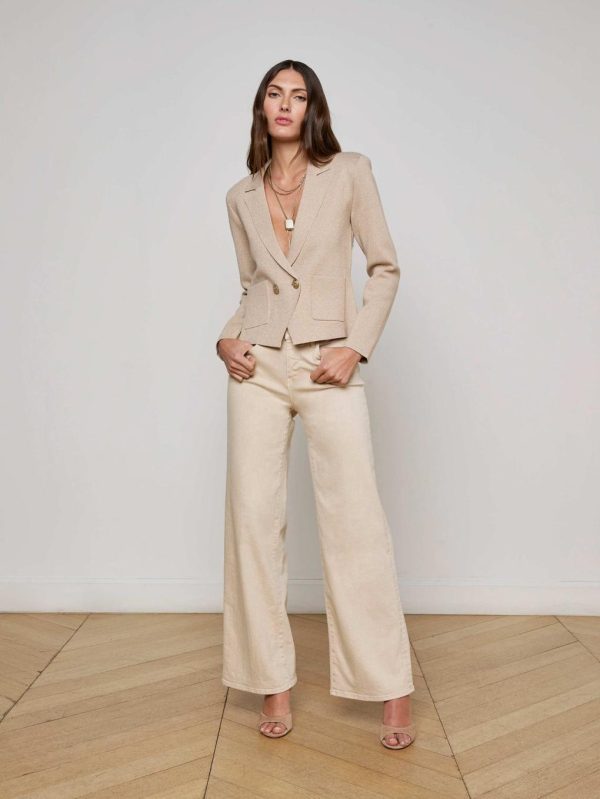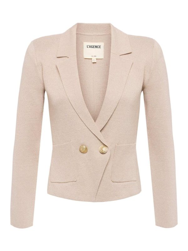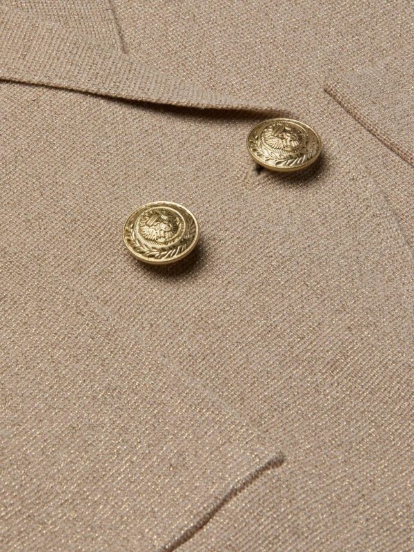 Sofia is a classic double-breasted blazer, offered in an ultra-wearable knit. Now in metallic khaki.