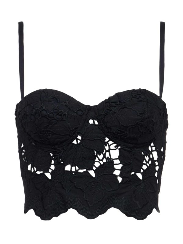 Elevate your wardrobe with this stunning black lace bustier featuring intricate floral embroidery, perfectly structured underwire cups, and sophisticated cutout details that create a flawless silhouette.