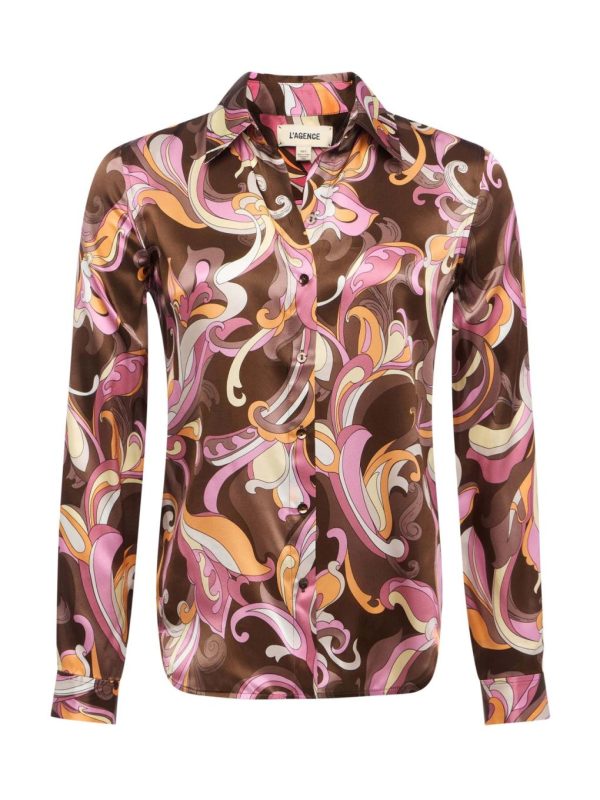 L’AGENCE Tyler Silk Blouse in Brown/Pink Multi Small Abstract Paisley | Women’s Tops