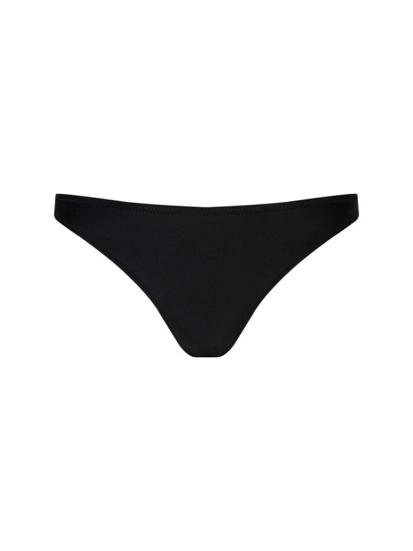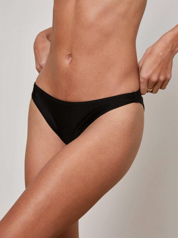 Experience the perfect blend of sophistication and style with this sleek bikini bottom, expertly crafted with a flattering scoop front and elevated high-leg silhouette. Now available in timeless black.